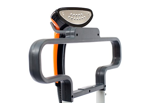 Двойная стойка для размещения одежды. Наверху стойки расположены плечики с подвесом для парового утюжка. Стойка регулируется по высоте. Двойная стойка предохраняет вещи из трикотажа, шерсти и других материалов, склонных к растягиванию, от деформации в процессе отпаривания. Объемные верхние вещи, такие как куртки, шубы и пальто, на такой стойке не съезжают и не перекашиваются. Отпаривать вещи, расположенные на двойной стойке с плечиками, удобно и комфортно.