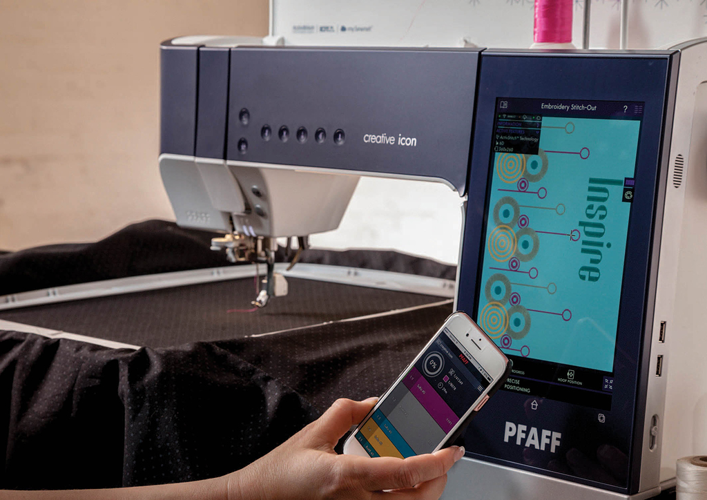 Подключение по Wi-Fi позволяет обновлять ПО Вашей машины, получать уведомления на Ваш смартфон о ходе выполнения вышивки и другие полезные данные. Облачное хранилище mySewnet™ обеспечивает легкий доступ к вышивальным дизайнам с самых разных устройств, включая Ваш компьютер, планшет и швейно-вышивальную машину Pfaff Creative Icon.