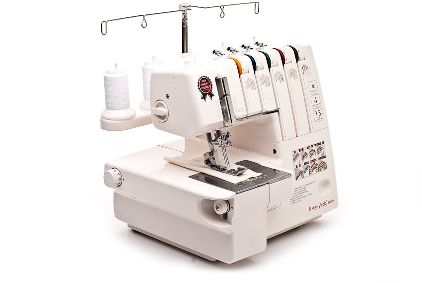 Merrylock 5000 - 5-и ниточный коверлок, более современный аналог модели Merrylock 007. Оверлок + плоскошовная машина. Один из самых популярных оверлоков, сочетающих в себе большое количество функций. Среди его функций стоит отметить регулировку давления лапки на ткань, дифференциал, выполнение распошивального шва.