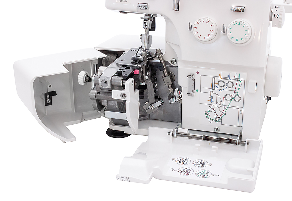 Janome Samurai 888 отлично выполняет самые необходимые типы швов, как широкие, так и узкие обметочные швы, Flatlock, ролевый шов. Так же позволяет регулировать натяжение нити, длину стежка, ширину обрезки, дифференциал транспортера и давление лапки. Эти параметры помогут оптимально настроить машину и выполнить идеальный шов.Рекомендуем посмотреть