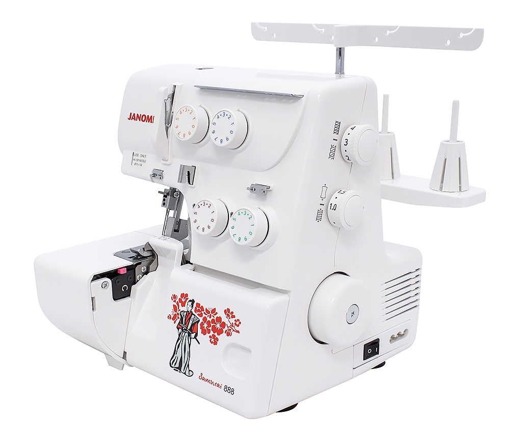 Оверлок Janome Samurai 888 может выполнять все самые необходимые виды швов с использованием 3-х или 4-х нитей. Уникален дизайн этой модели с принтом в виде самурая и цветущей сакуры. Данная модель оверлока отличается внешней заправкой нитей. Имеет высокую мощность, что положительно влияет на скорость шитья и позволяет справляться с большинством видов тканей.