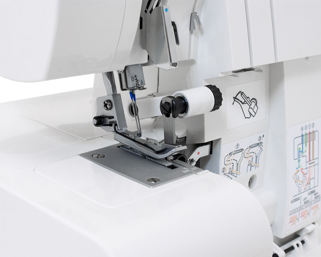 Оверлок позволяет регулировать натяжение нити, длину стежка, ширину обрезки, дифференциал транспортера и давление лапки. Эти параметры помогут оптимально настроить машину и выполнить идеальный шов.