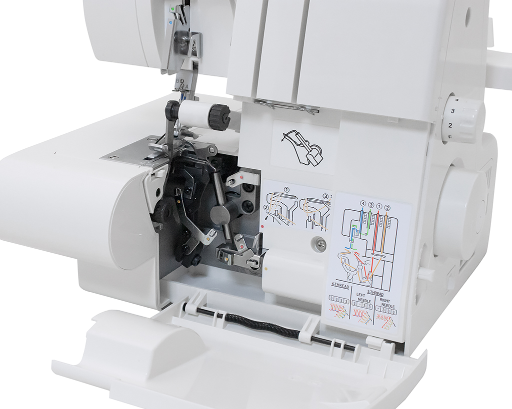 Оверлок позволяет шить 4, 3, а также 2 нитями с помощью специального конвертера. Двухниточные швы особенно актуальны для обработки легких тканей, например, шифона, тонкого шелка, батиста.