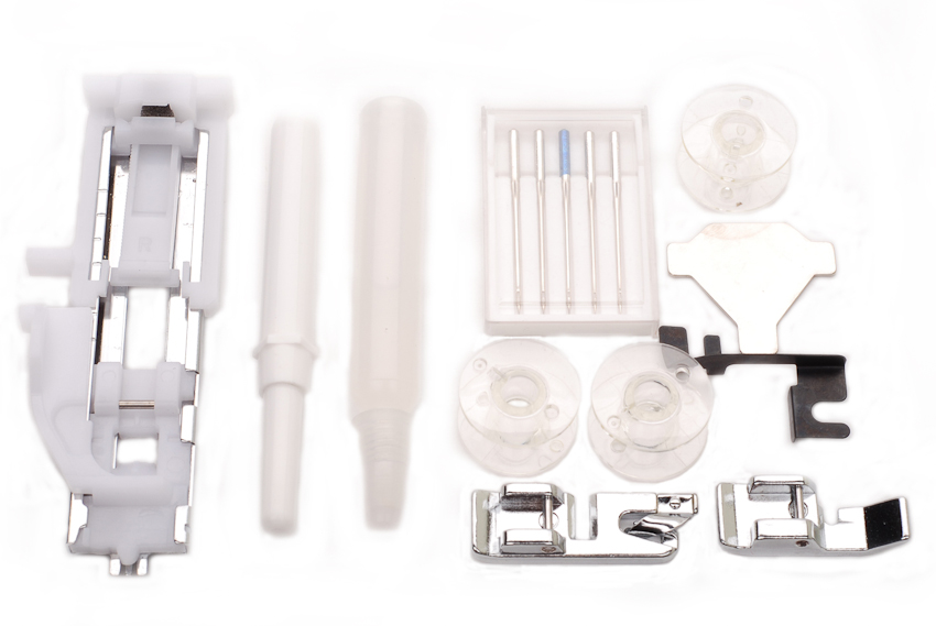 22 вида строчек (23 операции), нитевдевающее устройство, в комплекте 5 лапок, чехол жесткий. Челнок - вертикальный.