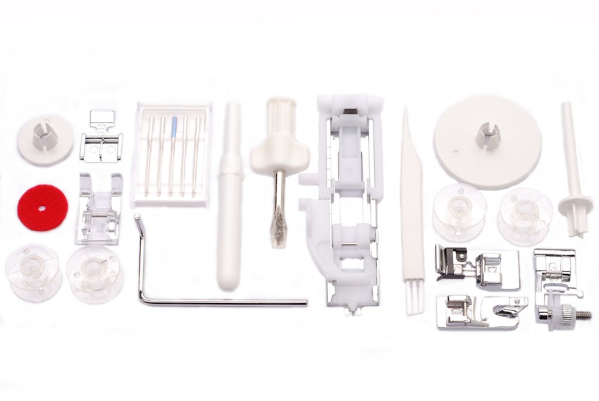 Имеет в комплекте 7 лапок, нитевдевающее устройство, плавную регулировку скорости, позиционирование иглы.