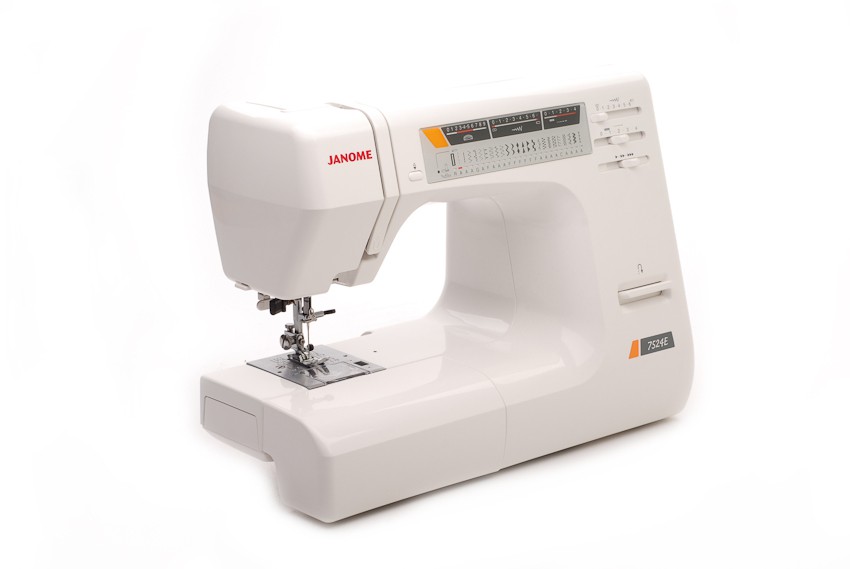 Швейная машина Janome 7524Е имеет горизонтальное челночное устройство, плавную регулировку скорости, выполняет 24 строчки. Имеет в комплекте 7 лапок, нитевдевающее устройство, подсказки.