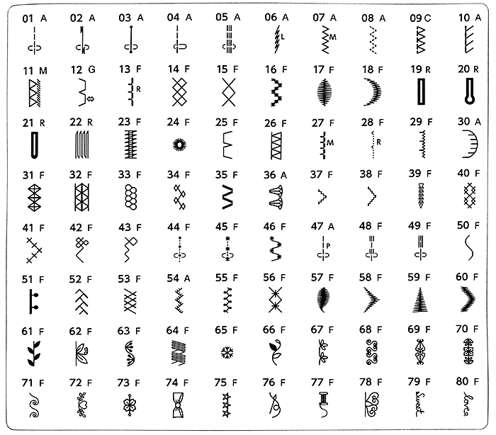 Расширенный набор из 80 строчек швейной машины Janome Sewist 780DС позволит не только сшить качественное изделие, но и украсить его с помощью разнообразных декоративных строчек.  Все виды швов вы можете увидеть на двух выдвигающихся табличках, расположенных с торца машины.